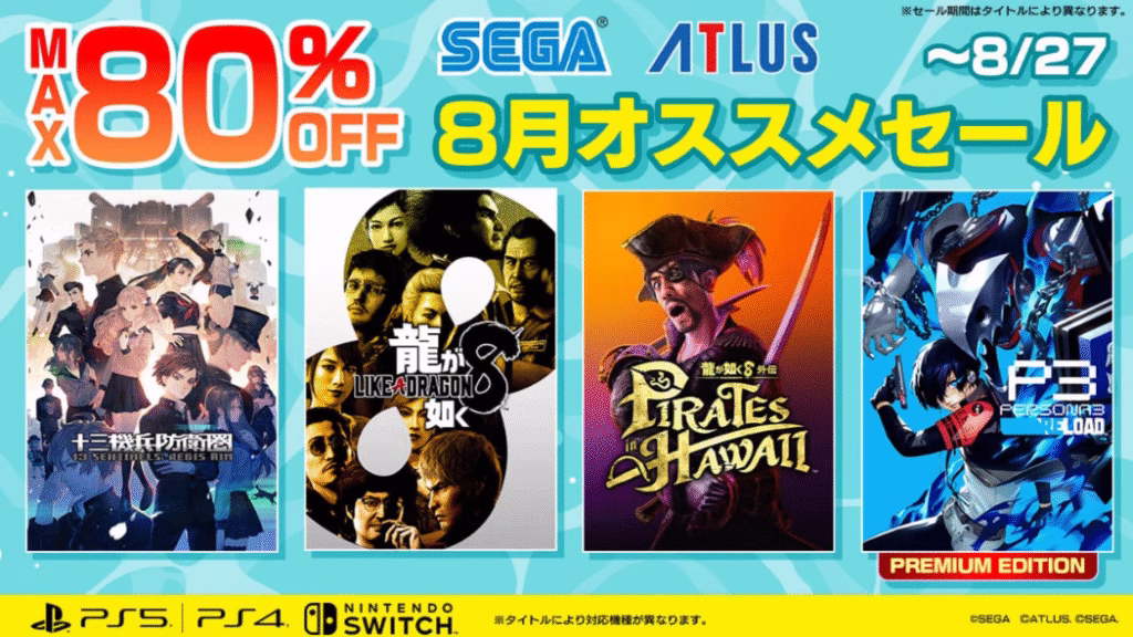 『龍が如く8』『ペルソナ3 リロード』など最大80%オフ!「セガ 8月オススメセール」開催中